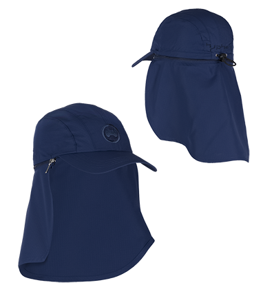 Super leichte Kappe mit abnehmbarem Nackenschutz in der Farbe deep sea (dunkelblau) mit gesticktem Hyphen Logo.